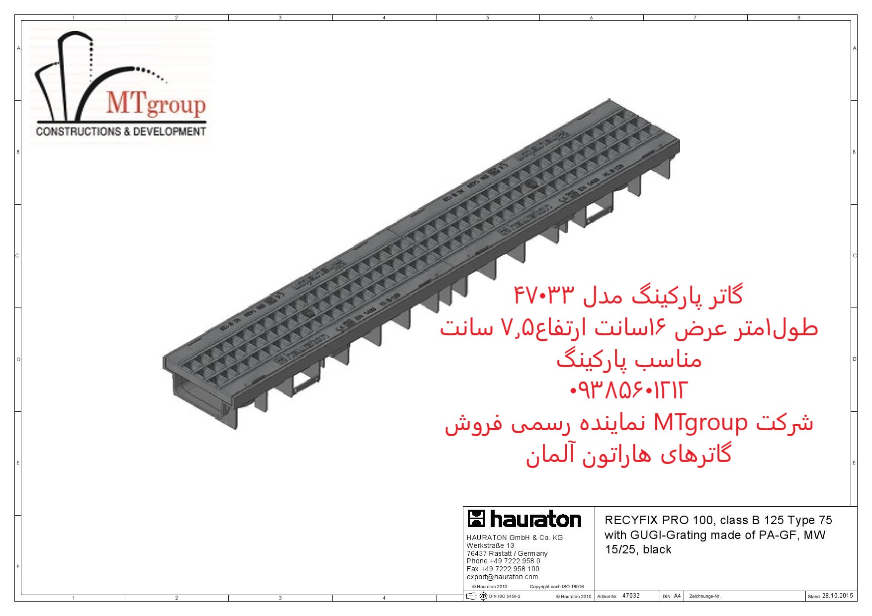 گاتر پارکینگ مدل 47032 با درپوش ( گریتینگ ) پلی آمید تقویت شده (FIBRETEC) از سری RECYFIX PRO